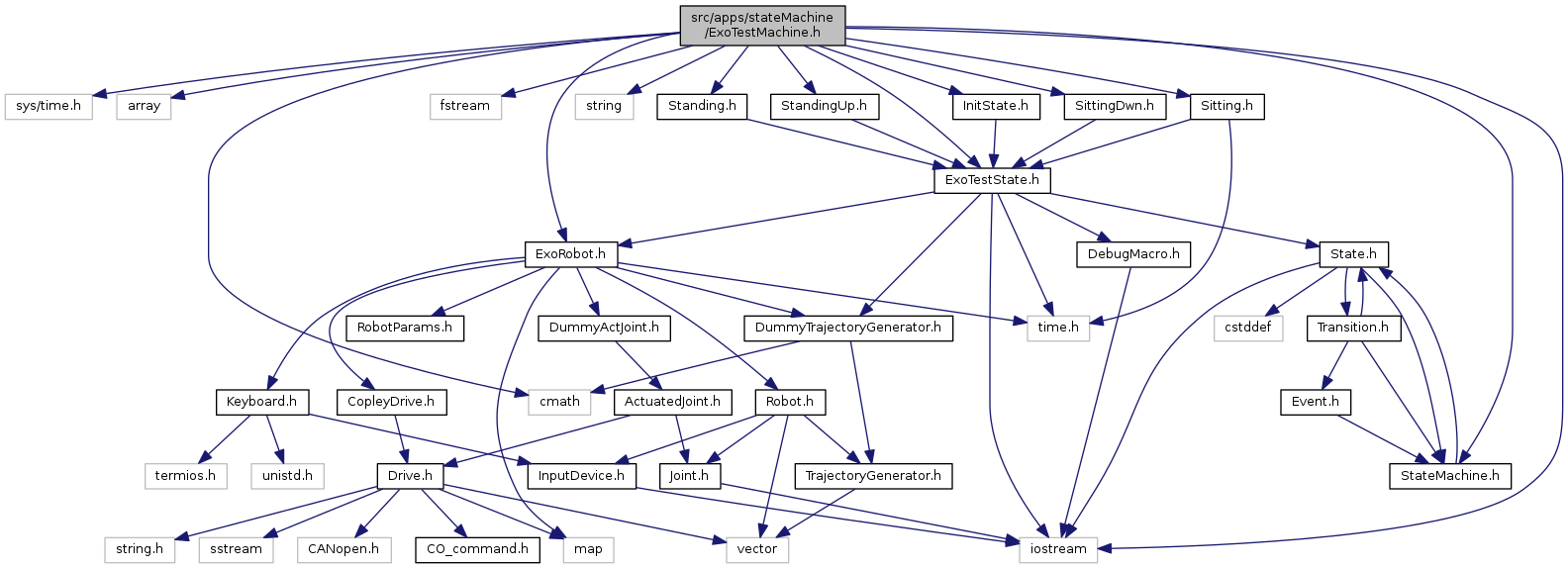 #include <sys/time.h>#include <array>#include <cmath>#include <fstream>#include <iostream>#include <string>#include "ExoRobot.h"#include "ExoTestState.h"#include "StateMachine.h"#include "InitState.h"#include "Sitting.h"#include "SittingDwn.h"#include "Standing.h"#include "StandingUp.h"